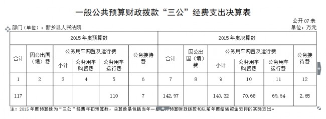 2015年度新乡县人民法院一般公共预算财政拨款“三公”经费支出决算表