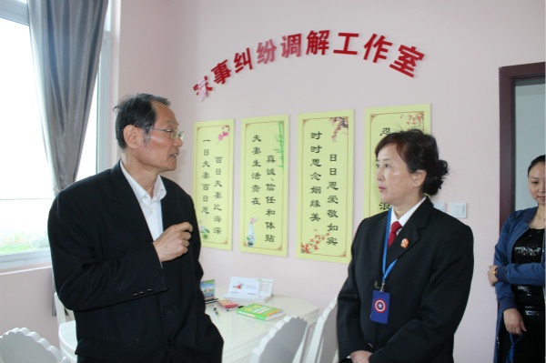 何乃祺副院长参观了新乡县法院设于法院内的家事纠纷调解工作室,仔细倾听了家事调解的典型案例,对于家事工作开展以来取得的良好的社会效果表示欣慰。同时建议我们,一是进一步细化家事工作室的布置,将调解员照片、简介上墙,悬挂当事人赠与的锦旗,彰显我们家事调解队伍的能力和公信力。二是建立调解员管理系统,逐步形成以调解能力、法律知识、服务态度为支撑的当事人对于调解员的星级评价体系。采取对于调解能力突出的调解员给与升星级的管理办法,并给与相应物质鼓励,不断吸收社会力量,形成良性发展的家事调解员队伍,努力培育金牌调解员。三是搭建当事人爱心互助群,帮助当事人以法院为纽带相识,互相交流,互相联系,互相支持,从小家成为大家,进一步拓宽多元化解决家事纠纷的渠道。